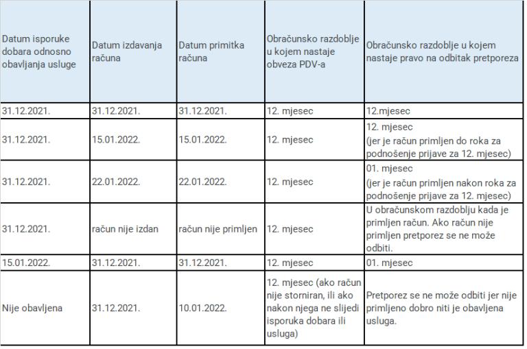 Nastanak obveze PDV-a i prava na odbitak pretporeza